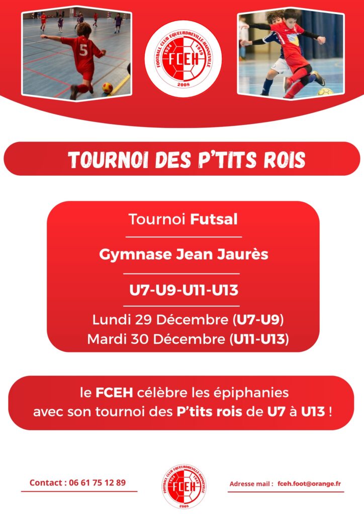 Le FCEH vous invite au tournois des p'tits Rois qui se déroulera le 29 Décembre pour les U7/U9, et le 30 Décembre pour les U11/U13. Pour plus d'informations n'hésitez pas à aller regarder l'article réalisé pour cet évènement. Cordialement
