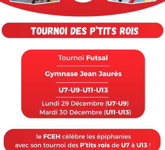 Le FCEH vous invite au tournois des p'tits Rois qui se déroulera le 29 Décembre pour les U7/U9, et le 30 Décembre pour les U11/U13. Pour plus d'informations n'hésitez pas à aller regarder l'article réalisé pour cet évènement. Cordialement